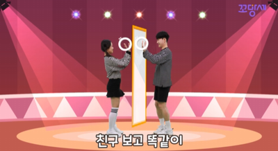 동작에서의 관계는 신체 사람과 사람의 관계, 신체 일부분과 물체와의 관계 등을 의미한다. 다른 사람의 동작을 이해하고 모방하는 미러 댄스는 다른 사람의 동작을 관찰하고 기억하여 똑같이 표현해내는 것을 말한다. 미러 댄스를 통해 공간적 개념을 이해하여 혼자, 같이, 소그룹, 대그룹 등 다양한 형태로 움직일 수 있도록 한다. 또한, 자신의 생각을 창의적으로 표현하며 신체 표현 능력을 기르는 데 도움을 주고, 거울과 신체 일부 관계에서 나타나는 가까이-멀리, 앞-뒤, 나란히-비스듬히 등의 개념을 익힐 수 있다.